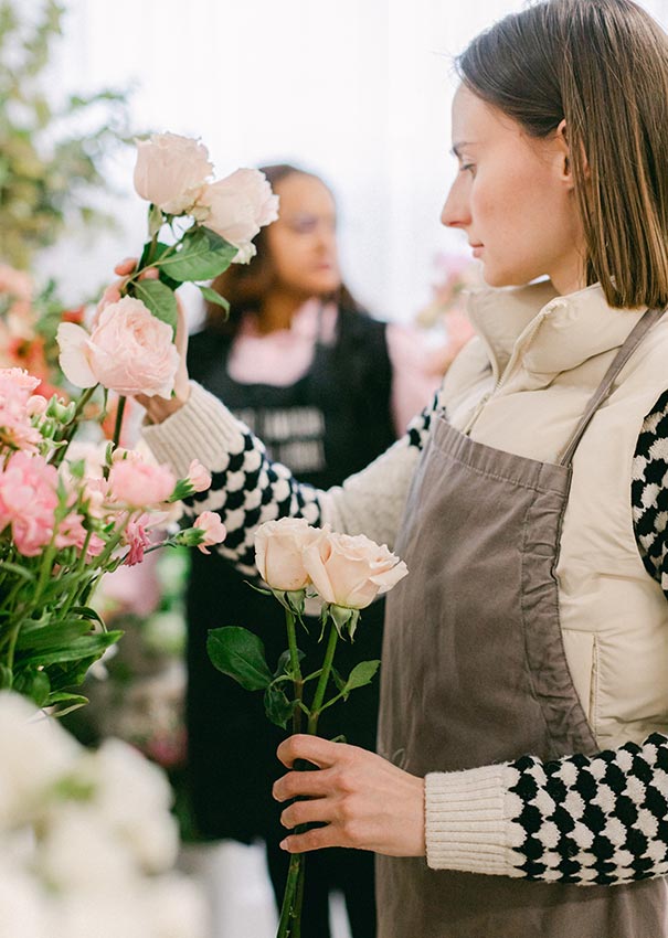 Afin de proposer à mes clients un décor à leur image et encore plus qualitatif, je suis partie me former à Paris auprès d’une grande designer florale. J’ai ainsi acquis les techniques professionnelles pour réaliser des centres de tables et autres compositions florales. Je ne travaille qu’avec des fleurs fraîches, pour un rendu plus chic et raffiné.