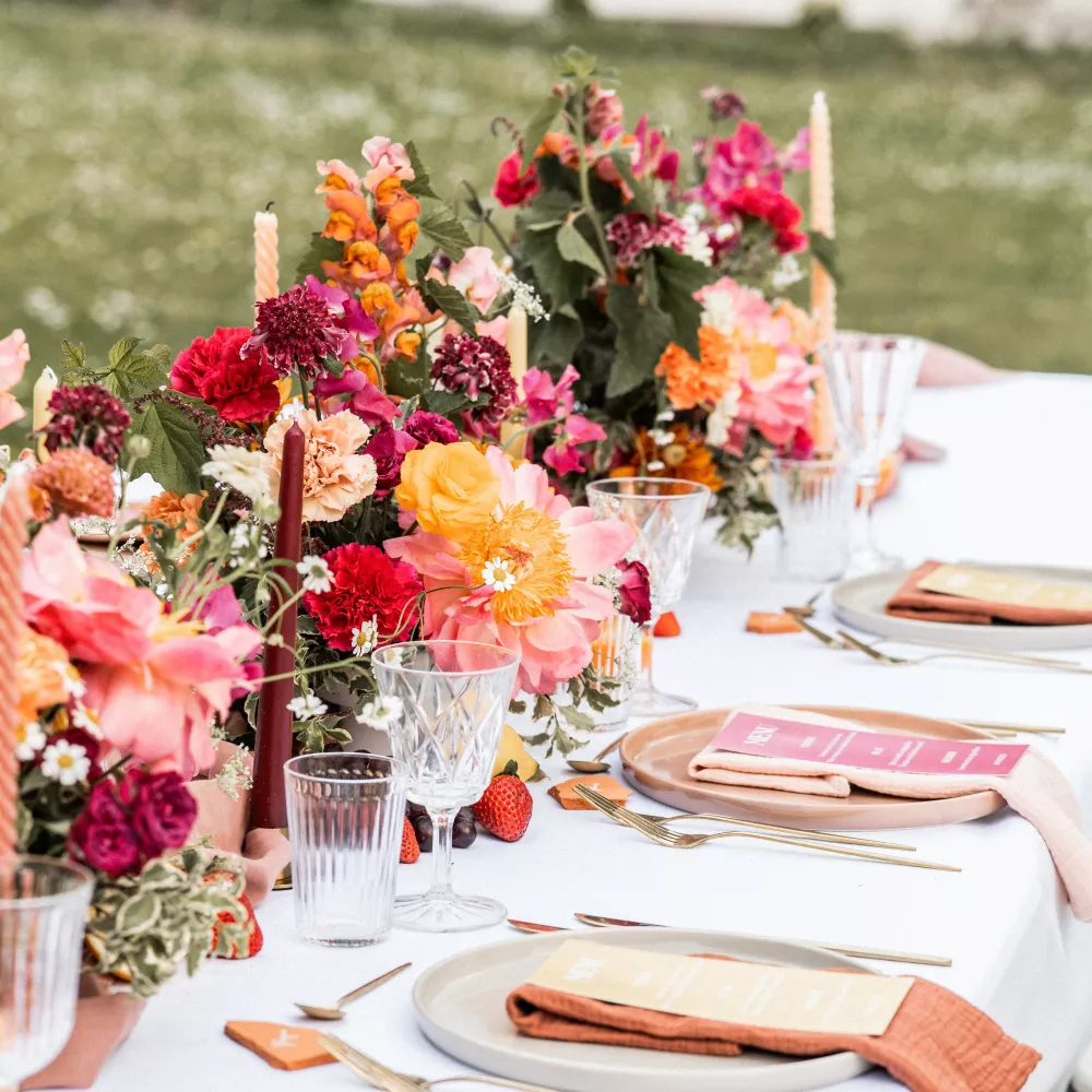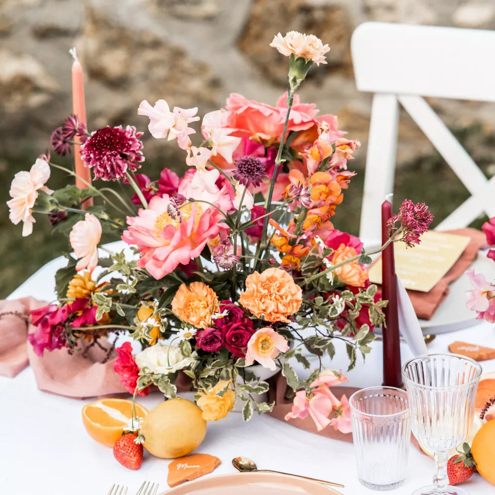Les centres de table floraux sont pensés pour structurer et valoriser la décoration de réception. Réalisés à partir de fleurs fraîches, ils s’adaptent au thème et à la palette de couleurs de votre événement. Chaque composition est conçue sur-mesure pour créer une ambiance cohérente, élégante et impactante.