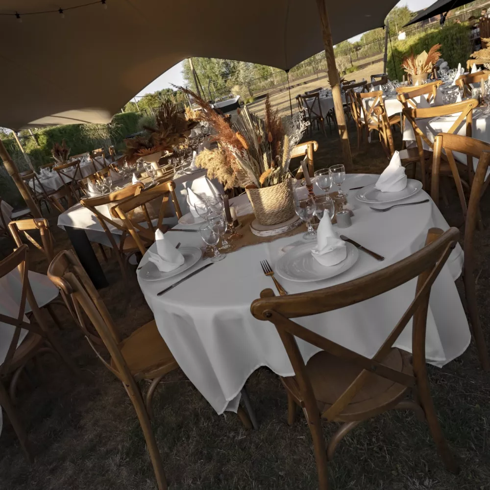 Idéale pour un mariage ou un dîner élégant, elle allie confort et authenticité pour sublimer vos tables.